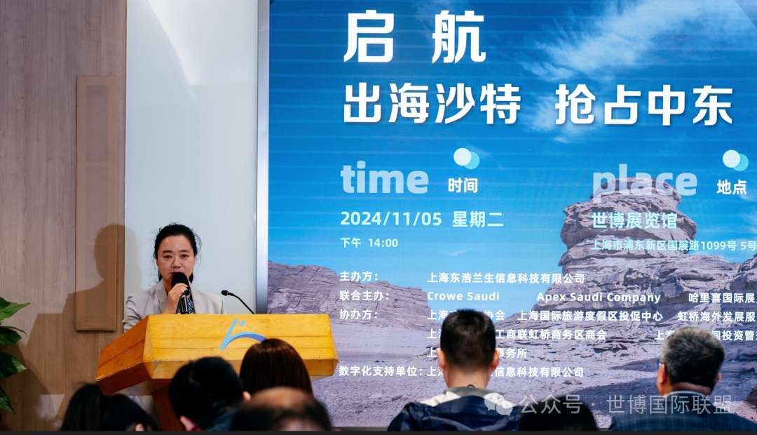 世博研究發(fā)展(國際)聯(lián)盟駐沙特·阿聯(lián)酋首席代表洪霄介紹了即將到來的12月沙特展商務(wù)考察行程,同時表示歡迎大家加入此次沙特之行,逐夢新征程,奮斗創(chuàng)未來。